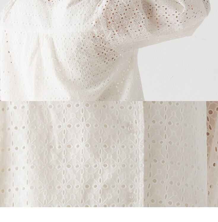 通気性の良さやハリ感のある生地感がご家庭でのお手入れも難しくなくシルエットからも優しい印象を作ってくれるおすすめの一枚です。